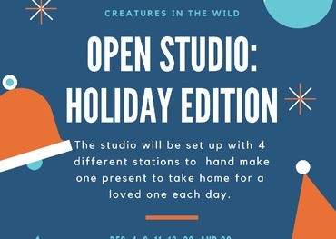 During the month of December the Creatures in the Wild Studio is taking on a different sort of theme. Giving will be our theme. With special times and dates children can come in and make a present, by hand, for a loved one. Each day we will have four different stations for them to choose from. As always the projects will be open ended and allow for a ton of self expression. No two will look the same, making it extra special. There will be stations for open sensory play breaks, and plenty of play for the toddlers and babies.
