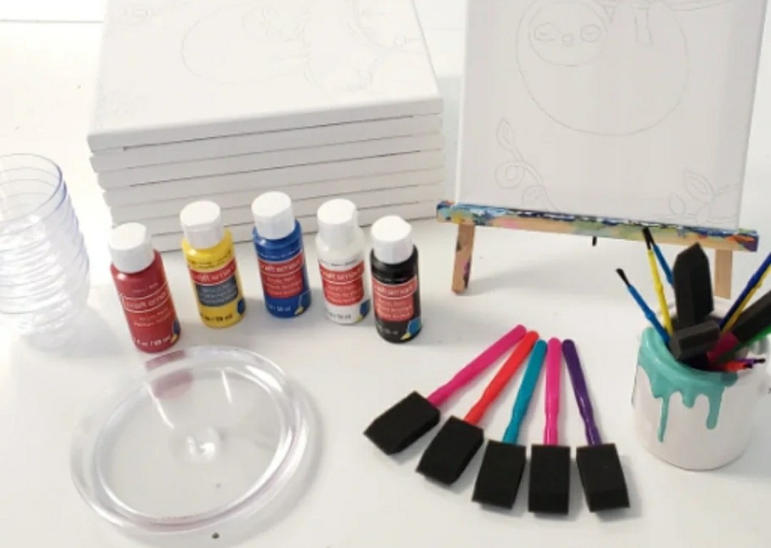 Includes: 8 - 8x10 canvases (design of choice) 8 - detail brushes 8 - background brushes 8 - paint mixing plates 8 - water bowls 8 - printed pics of... more