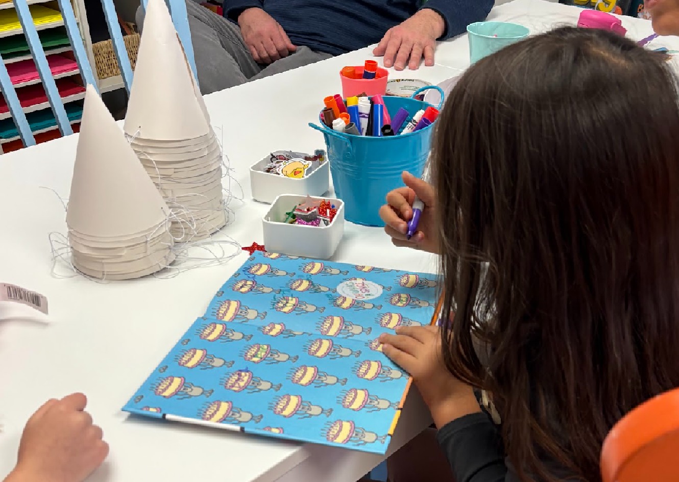 Up to 10 children Birthday table set for party with tablecloth, plates, and napkins that will reflect your custom birthday theme Space set up for play with... more