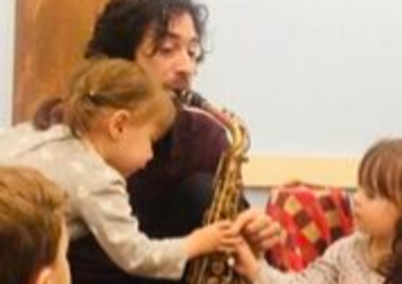 At this age, children love stories, mysteries, suspense and fun games. They love to explore new instruments and musical traditions. In this class, all the instruments come to life as characters and actually speak through their music so that the children learn to play instruments by performing the magical act of making their instruments talk (which is essentially what every great musician does with his or her instrument)! We also tell stories about great composers ranging from Herbie Hancock to Mozart, giving them a glimpse into the cultural and historical background and making them feel more personally connected to the composers (often we show pictures of the great artists as children). We lay the groundwork for reading music by presenting an intuitive approach to pitch through games like the Pitch Switch about a cow and a bird and we develop their sense of musicality through games like our Mozart Tip-Toe game, in which children sing Mozart’s “Non Piu Andrai” aria from the Marriage of Figaro while tip-toeing and hopping around the room trying to find a hiding Mozart.